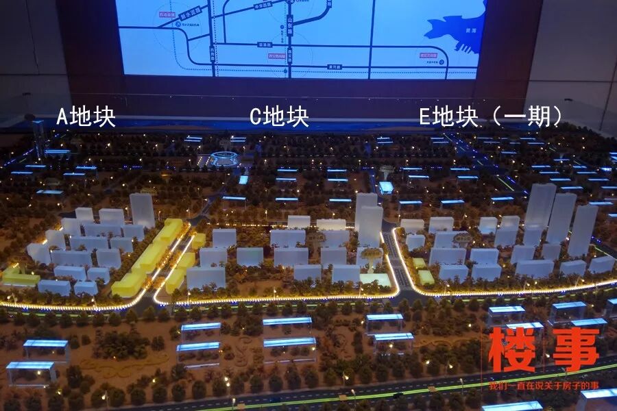 从沙盘来看,E区包括E1、E2区两个单独空间,中间由L形的城市公园给隔开,预计该公园将成为公共用地。