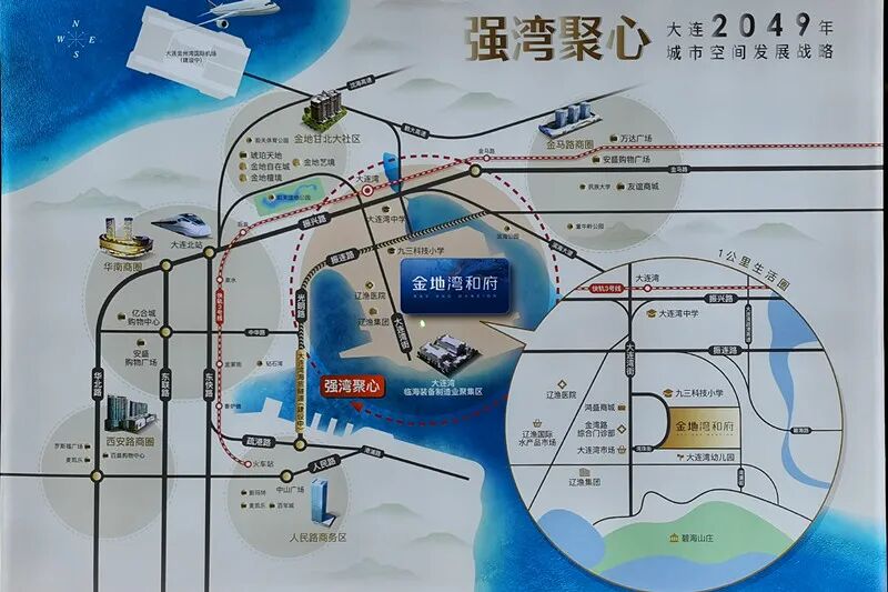 随着城市向北向西发展,众多规划不断出台。2020年5月16日,大连市人大正式表决了《大连2049城市愿景规划》,提出以大连湾为核心的“强湾聚心”城市空间提振战略,金地跟随西拓北进的步伐深耕甘北,又伴随着《规划》落地抢驻大连湾。